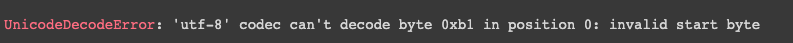 해당 오류의 해결책은 3가지 인데, 첫번째는 코드를 읽어올 때 'r' 대신 'rb' 를 적용해 바이너리 형태로 불러오는 것이다.