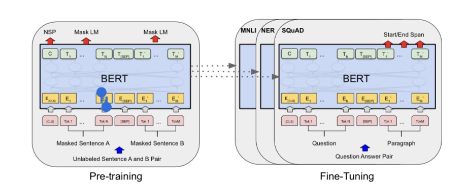 BERT 모델은 이러한 MLM과 NSP 태스크를 동시에 학습한다. 모델은 입력 문장에서 일부 단어를 마스킹한 후, 마스킹된 단어를 예측하는데 이때 모델은 마스킹된 단어의 위치를 알 수 있지만, 해당 단어가 어떤 단어인지는 알 수 없다. 따라서, 모델은 문장 내에서 다른 단어들과의 상호작용을 고려하여 마스킹된 단어를 예측해야 한다.