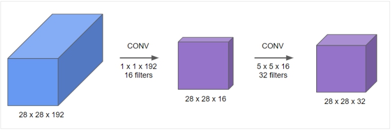 이때 1x1 Convolution 을 input 값에 Convolution 해주면 해당 input 의 Channel 은 1x1 Convolution 의 Filter 수만큼 축소된다.