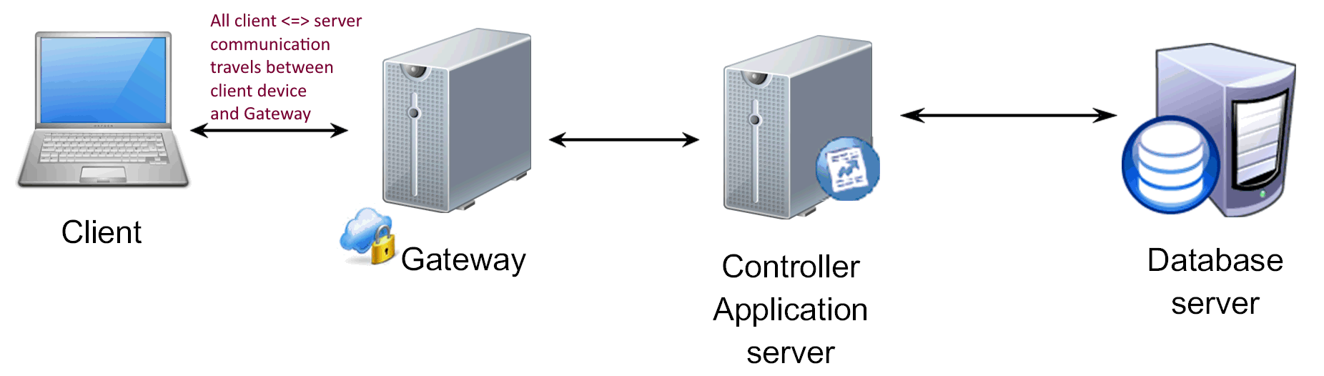 게이트웨이의 동작은 프록시와 매우 유사하다. 다만 게이트웨이의 경우에는 게이트웨이와 연결된 외부 서버가 HTTP 서버 이외의 서비스를 제공하는 서버가 된다. 클라이언트와 게이트웨이 사이를 암호화하는 등으로 안전(Secure) 하게 접속함으로써 통신의 안전성을 높이는 역할을 한다.